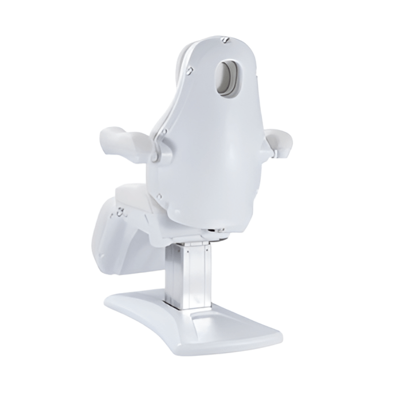 De Behandelstoel Elektrisch P Clinic Venus Wit is een professionele behandelstoel en beschikt over 4 motoren. De zithoogte van de behandelstoel is elektrisch verstelbaar tussen 62 cm en 88 cm. De Behandelstoel Elektrisch P Clinic Venus Wit kan volledig plat worden gelegd en heeft een hoofdsteun met een afsluitbare gezichtsuitsparing. De rugleuning, zitting en beensteun kunnen afzonderlijk elektrisch worden versteld. De pu leder stoffering van de stoel is gemakkelijk schoon te maken en zorgt voor een luxe look. De stoel heeft een Trendelenburg-functie; de stoel kan zo worden gekanteld dat de benen hoger liggen dan het hoofd. De armleuningen zijn verstelbaar en afneembaar, de hoofdsteun is verstelbaar. De Behandelstoel Elektrisch P Clinic Venus Wit hoeft alleen op het lichtnet te worden aangesloten en heeft een garantie van 3 jaar.