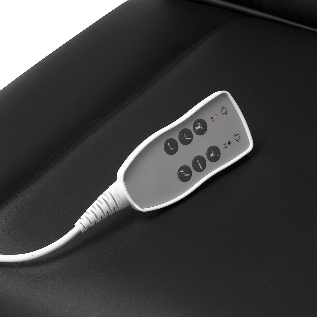 De elektrische behandelstoel Azzurro Lux 3 Motoren Zwart is een professionele en veelzijdige behandelstoel, ideaal voor schoonheidssalons, pedicurepraktijken, massage- en fysiotherapiepraktijken. Met drie motoren en een draagvermogen van 120 kg biedt deze stoel optimale comfort en functionaliteit voor zowel de klant als de behandelaar. De stoel is eenvoudig te bedienen met een handzame afstandsbediening waarmee u de hoogte, de rugleuning en de beensteun traploos kunt verstellen. De Azzurro Lux is bekleed met zwart synthetisch leder, dat niet alleen duurzaam en slijtvast is, maar ook gemakkelijk te reinigen. De stoel is ontworpen met oog voor detail en biedt een uitstekende prijs-kwaliteitverhouding.