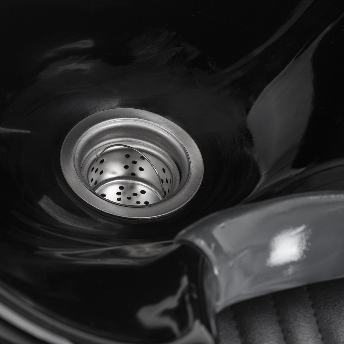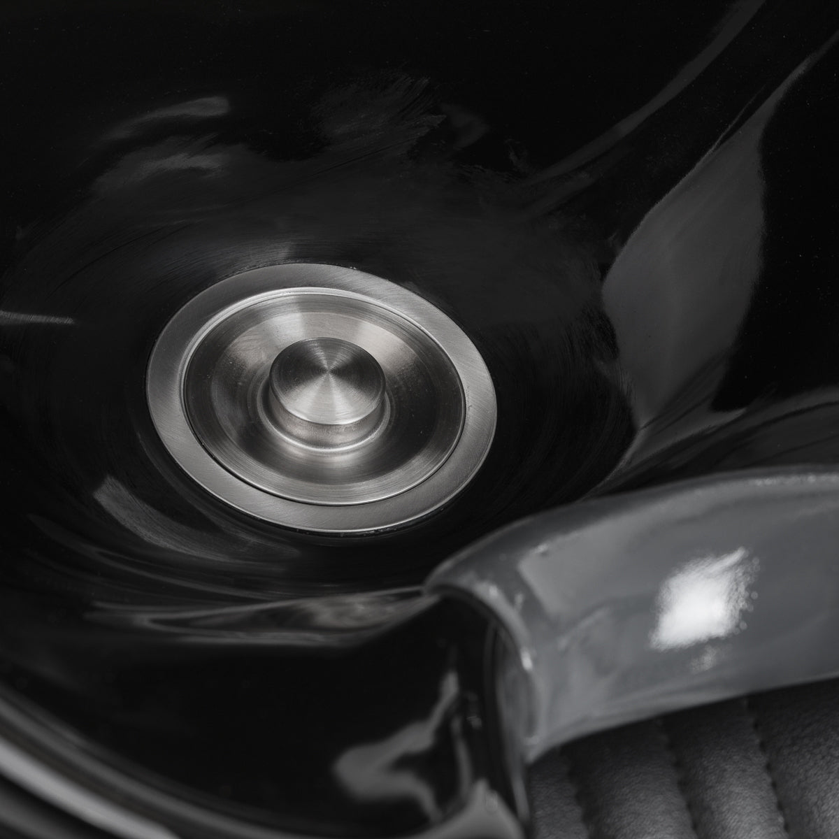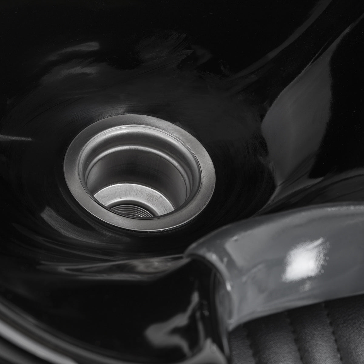 De diepe, zwarte keramische wasbak van de Gabbiano Patrizio wasunit minimaliseert het spatten van water en haarproducten, waardoor behandelingen comfortabel en efficiënt kunnen worden uitgevoerd. De kantelbare wasbak maakt het mogelijk de hoek aan te passen aan de individuele behoeften van de klant. Het keramische materiaal is duurzaam, bestand tegen vlekken en krassen, en gemakkelijk schoon te maken. De ergonomisch gevormde rand van de wasbak biedt optimale ondersteuning en comfort tijdens het wassen, terwijl de zwarte kunststof nekbeschermer voorkomt dat de klant de kou van het keramiek voelt.