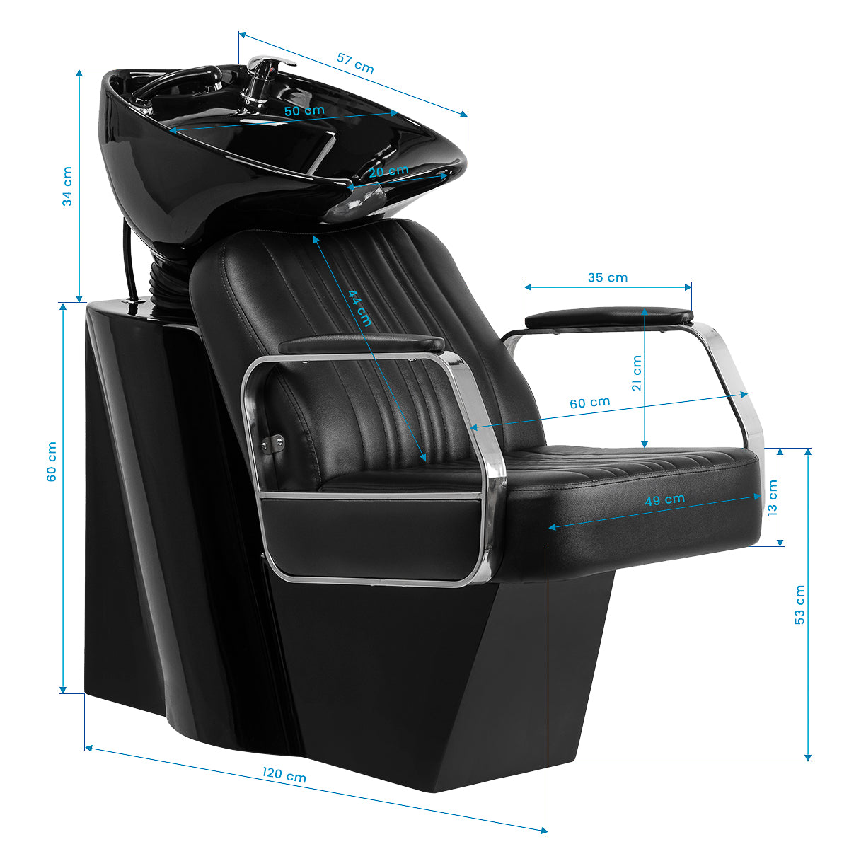 De Wasunit Gabbiano Patrizio Zwart is een stijlvolle en functionele wasunit, ideaal voor barbershops en kapsalons. Deze wasunit biedt zowel de kapper als de klant optimaal comfort tijdens het wassen en verzorgen van het haar. Het moderne, door de auto-industrie geïnspireerde design geeft uw salon een unieke uitstraling. Met een diepe, keramische wasbak in zwart en een comfortabele zitting is deze wasunit ontworpen voor efficiëntie en gebruiksgemak.